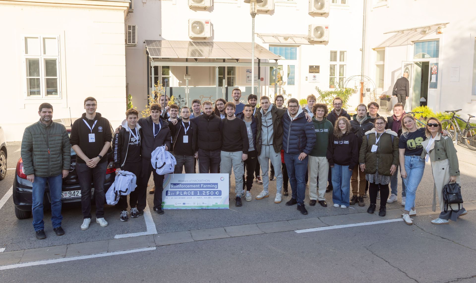From November 11 to November 15, 2025, Ventspils University of Applied Sciences Electronics Engineering 3rd year students Rūdolfs Pakalns, Marta Dzelme and 1st year student Kristofers Jēkabs Rozevskis participated in the university alliance "COLOURS" hackathon "Reinforcement Farming", which took place at the University of Osijek in Croatia, at the Faculty of Electrical Engineering, Computer Science and Information Technology (FERIT). The main task of the hackathon was to train artificial intelligence agents as game characters using "stimulated learning" methods. On the last day, the AI characters developed by the teams competed against agents from other teams.