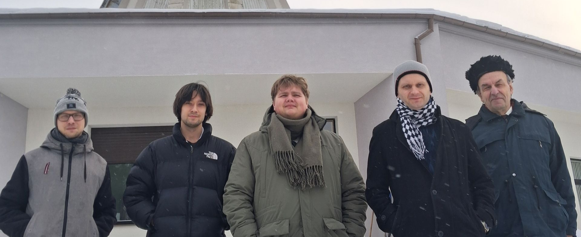 As of January 2026, the Fundamental and Applied Research Programme of the Latvian Council of Science project No. lzp-2025/1-0065 “Multi-material Dust Astrochemistry (DACE)” has commenced. The research is being carried out by staff of the Astronomy and Astrophysics Department at the Engineering Research Institute “Ventspils International Radio Astronomy Centre” (VIRAC) of Ventspils University of Applied Sciences. The scientific significance of DACE lies in its novelty. It has long been known that within the Solar System and in the wider cosmic space of our Galaxy and beyond there exist tiny solid grains – interstellar dust. They have a varied chemical composition, albeit two classes of materials dominate: silicate minerals (rock) and carbon (soot). This diversity of dust is taken into account in several subfields of astrophysics, such as physics of the interstellar medium physics and cosmochemistry (the science of the origin of the compounds and elements that formed the Solar System). However, in astrochemistry – which studies molecular transformations in the interstellar medium – the varied composition of dust has so far been largely ignored. Nevertheless, it may be significant, as many important chemical transformations in space occur on dust grain surfaces. Within DACE, we will investigate how differences in interstellar dust materials – including temperature, surface adsorption (molecular sticking) properties, and other parameters – affect the chemical composition of interstellar nebulae. Starting in January, leading researchers J. Kalvāns and J. Freimanis began work on the DACE project, conducting preliminary studies as well as initial scientific and administrative planning and preparation. Full, coordinated, and active research began in February with the formal involvement of students. On February 18, the project’s opening seminar was held, during which two key research directions were defined: calculating temperatures for dust grains in interstellar clouds embedded in cosmic radiation fields, and adapting a new reaction database for astrochemical calculations. After the seminar, project participants visited VIRAC radio telescope complex in Irbene (see photo).